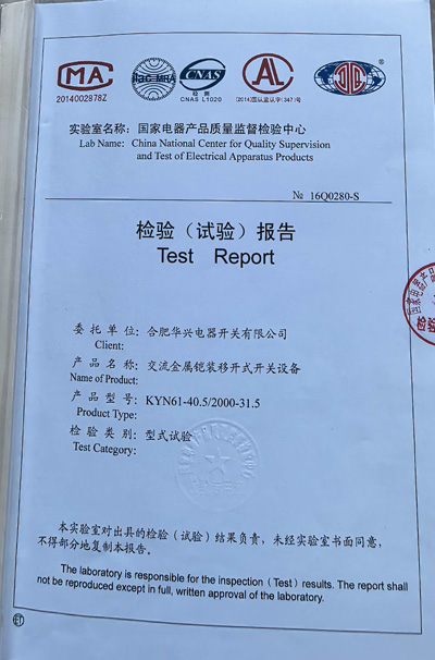 高压开关柜KYN28-24试验报告